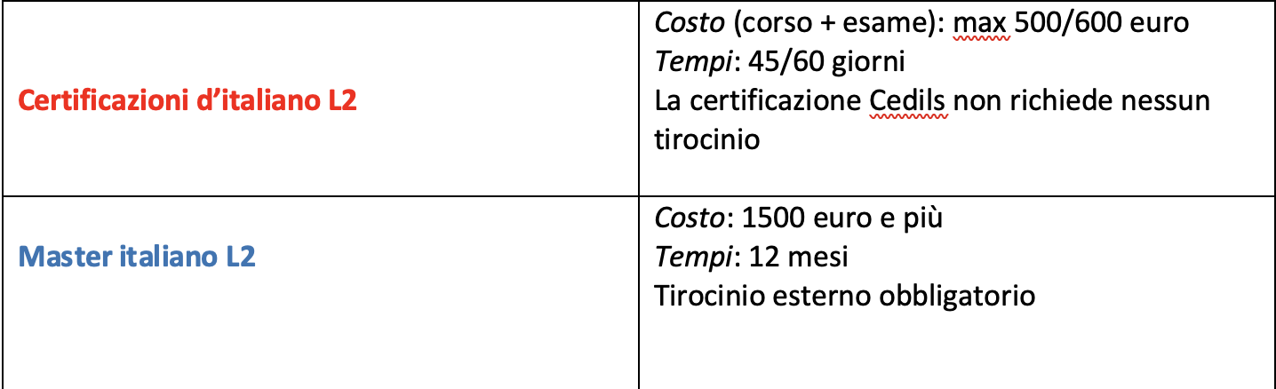 Qual è la differenza tra le Certificazioni e i Master e perchè le Certificazioni d’italiano L2 sono più convenienti?
